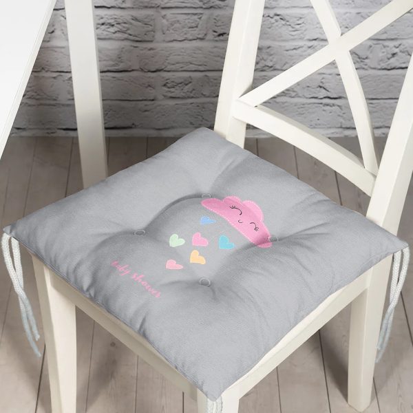 Realhomes Gri Zeminde Pembe Bulutlu Baby Shower Modern Pofuduk Sandalye Minderi