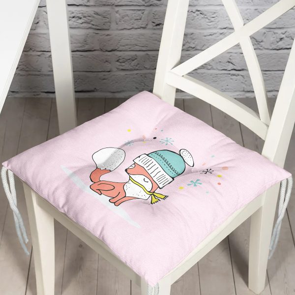 Realhomes Pembe Zeminde Sevimli Tilki Desenli Modern Pofuduk Sandalye Minderi