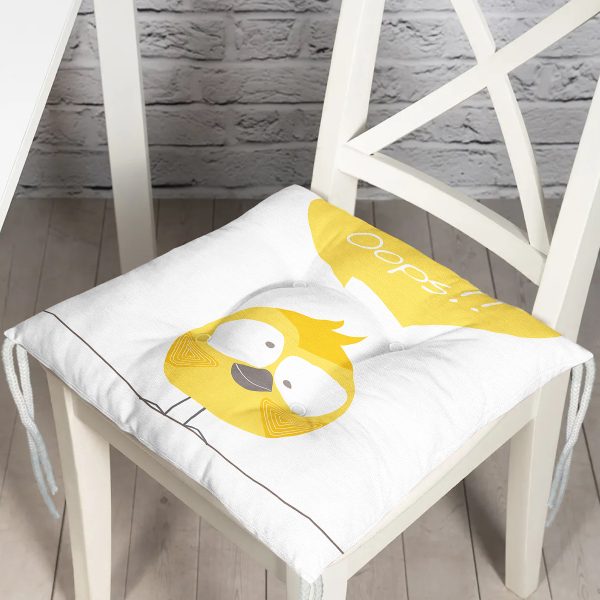 Sarı Kuş Motifli Dijital Baskılı Çocuk Odası Pofuduk Sandalye Minderi