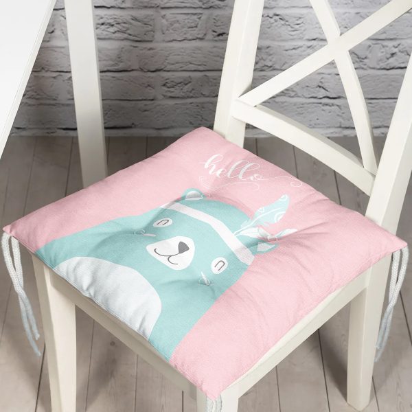Pembe Zemin Sevimli Ayıcık Desenli Özel Tasarımlı Dijital Baskılı Modern Pofuduk Sandalye Minderi