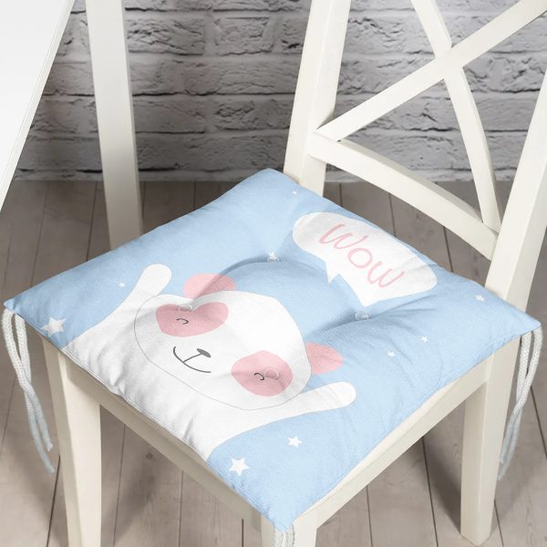 Mavi Zemin Sevimli Köpek Desenli Dijital Baskılı Çocuk Odası Pofuduk Sandalye Minderi