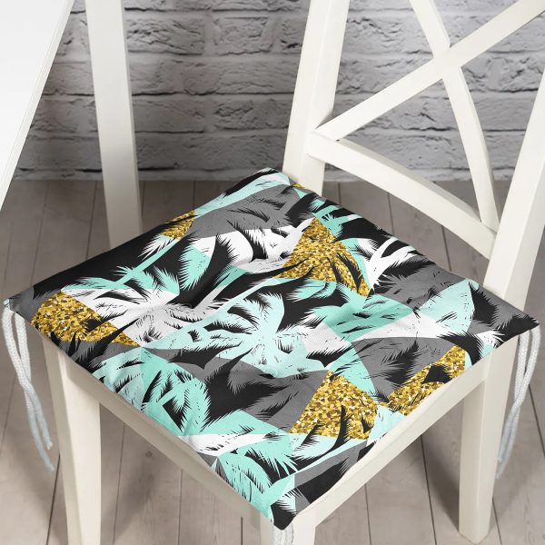 Turkuaz Palmiye Çizimli Dijital Baskılı Pofuduk Sandalye Minderi
