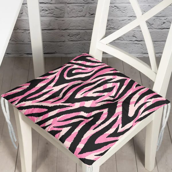 Siyah Zemin Üzerinde Pembe Renkli Çizim Dijital Baskılı Modern Pofuduk Sandalye Minderi