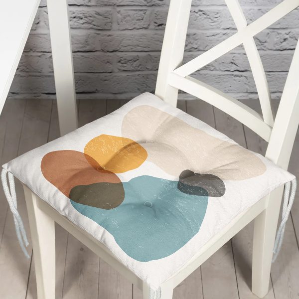 Beyaz Zemin Üzerinde Renkli Geometrik Çizimli Dijital Baskılı Modern Pofuduk Sandalye Minderi
