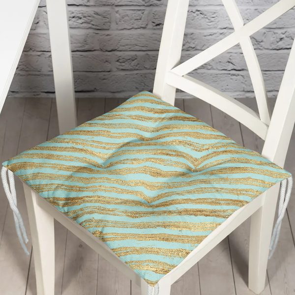 Renkli Zemin Üzerinde Gold Detaylı Yatay Çizgili Dijital Baskılı Modern Pofuduk Sandalye Minderi