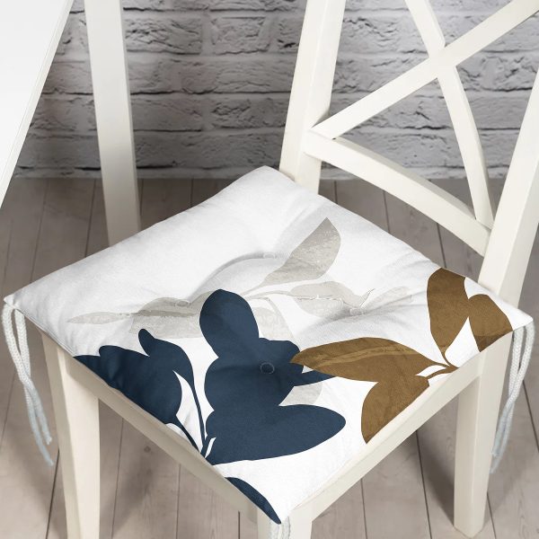 Özel Tasarım Yaprak Motifli Dijital Baskılı Modern Pofuduk Sandalye Minderi