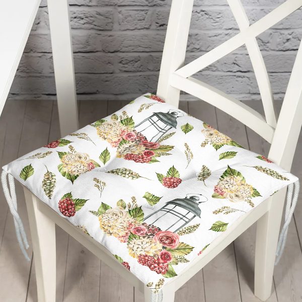 Özel Tasarım Çiçek Tasarımlı Dijital Baskılı Modern Pofuduk Sandalye Minderi