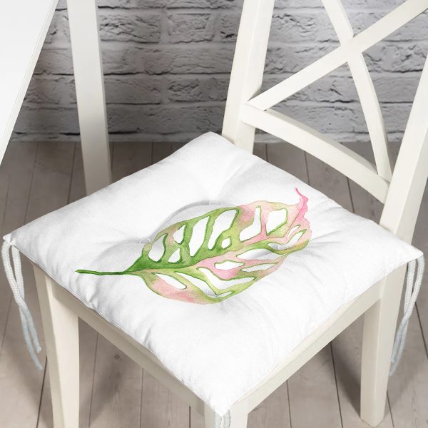 Egzotik Yaprak Tasarımlı Dijital Baskılı Modern Pofuduk Sandalye Minderi