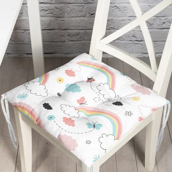 Realhomes Gökkuşağı ve Kelebek Motifli Özel Tasarım Dijital Baskılı Modern Pofuduk Sandalye Minderi