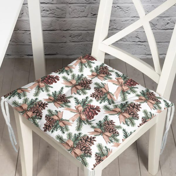 Özel Tasarım Kozalak Tasarımlı Dijital Baskılı Modern Pofuduk Sandalye Minderi