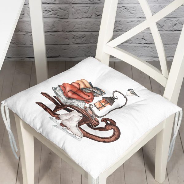 Özel Tasarım Kış Temalı Dijital Baskılı Modern Pofuduk Sandalye Minderi