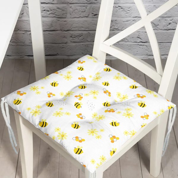 Sevimli Arı Desenli Dijital Baskılı Özel Tasarım Modern Pofuduk Sandalye Minderi