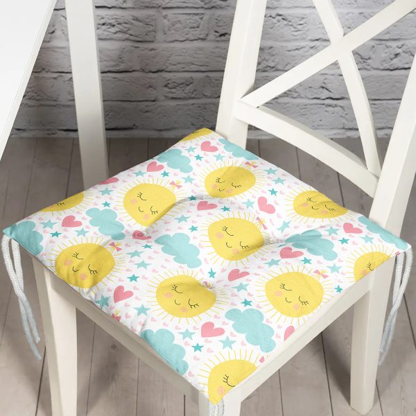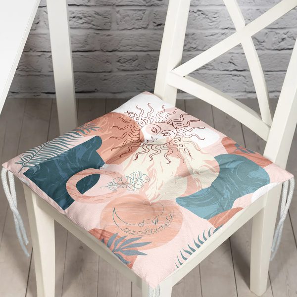 Uyuyan Güneş Motifli Dijital Baskılı Özel Tasarım Modern Pofuduk Sandalye Minderi