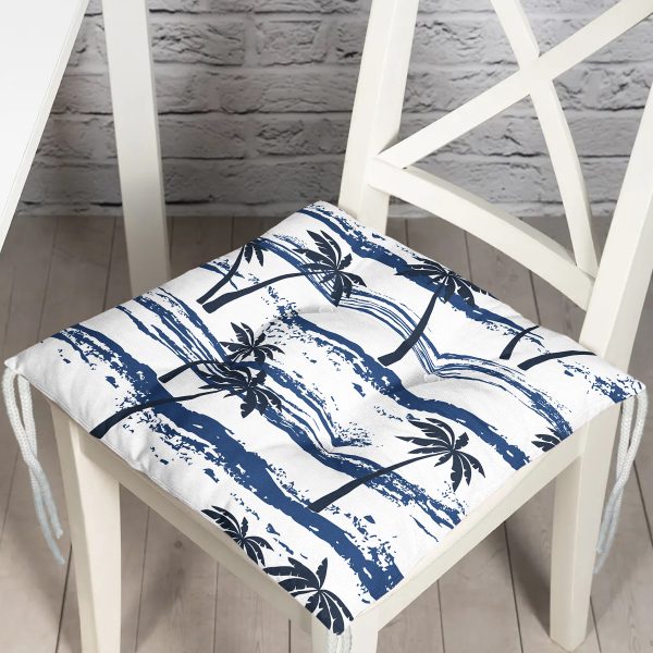 Mavi Palmiye Desenli Modern Pofuduk Sandalye Minderi