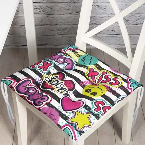Realhomes Kiss Love Pop Art Tasarımlı Dijital Baskılı Modern Pofuduk Sandalye Minderi