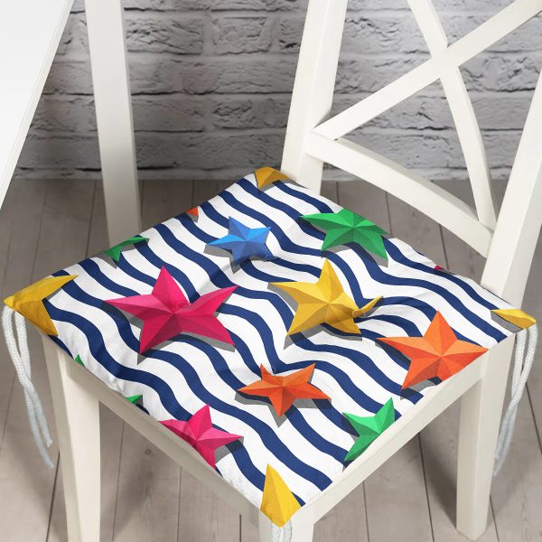 Zikzak 3D Yıldız Desenli Dijital Baskılı Modern Pofuduk Sandalye Minderi