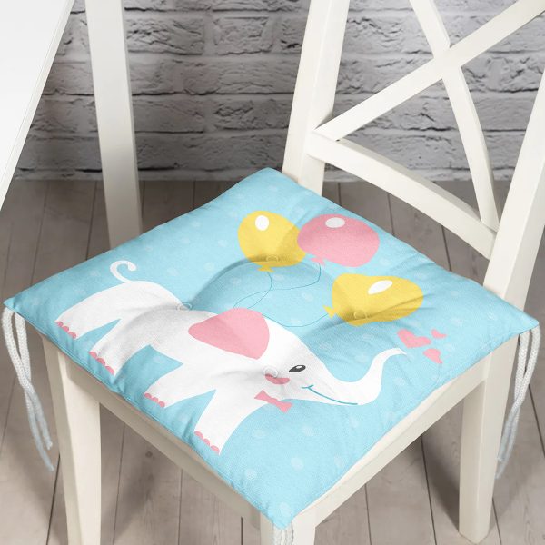 Mavi Zeminde Fil Motifli Özel Tasarımlı Dijital Baskılı Çocuk Odası Pofuduk Sandalye Minderi