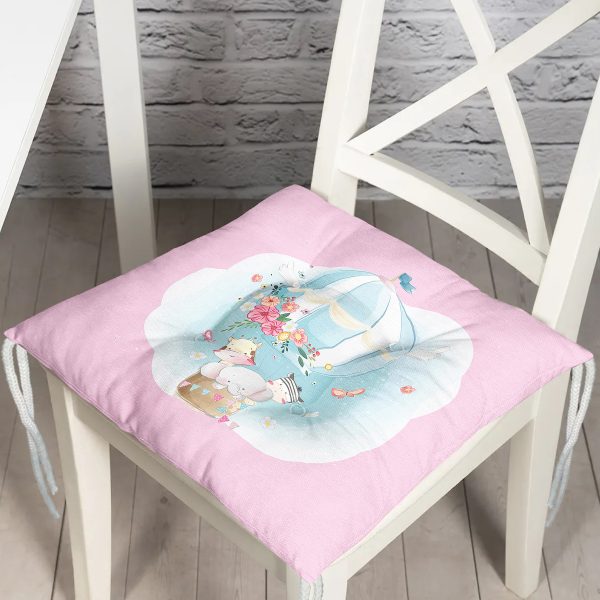 Realhomes Pembe Zeminde Uçan Balon Desenli Dijital Baskılı Modern Pofuduk Sandalye Minderi