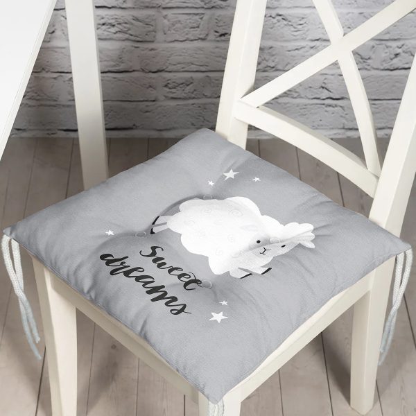 Realhomes Gri Zeminde Sevimli Kuzucuk Tasarımlı Modern Pofuduk Sandalye Minderi