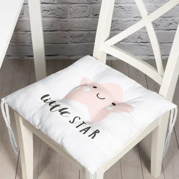 Little Star Yazılı Yıldız Desenli Özel Tasarımlı Dijital Baskılı Çocuk Odası Pofuduk Sandalye Minderi