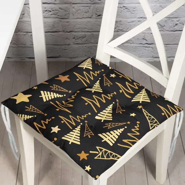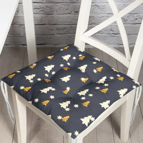 Renkli Zemin Üzerinde Çam Ağacı Desenli Dijital Baskılı Modern Pofuduk Sandalye Minderi