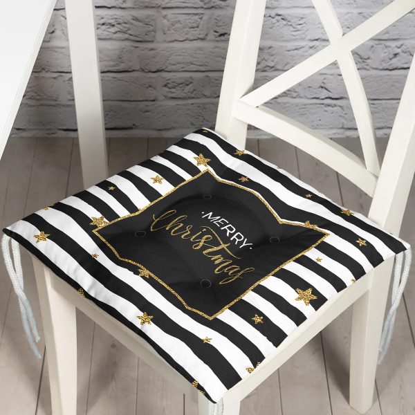 Beyaz Zemin Üzerinde Gold Yazılı Merry Christmas Dijital Baskılı Modern Pofuduk Sandalye Minderi