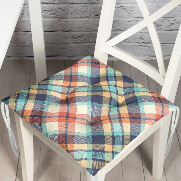 Renkli Zemin Üzerinde Pastel Renkli Ekose Desenli Dijital Baskılı Modern Pofuduk Sandalye Minderi
