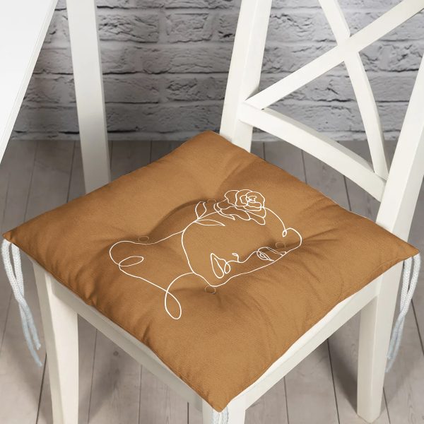 Renkli Zemin Üzerinde Onedraw Çizimli Bayan Silüeti Dijital Baskılı Modern Pofuduk Sandalye Minderi