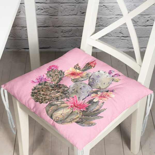 Renkli Zemin Üzerinde Kaktüs Desenli Dijital Baskılı Modern Pofuduk Sandalye Minderi
