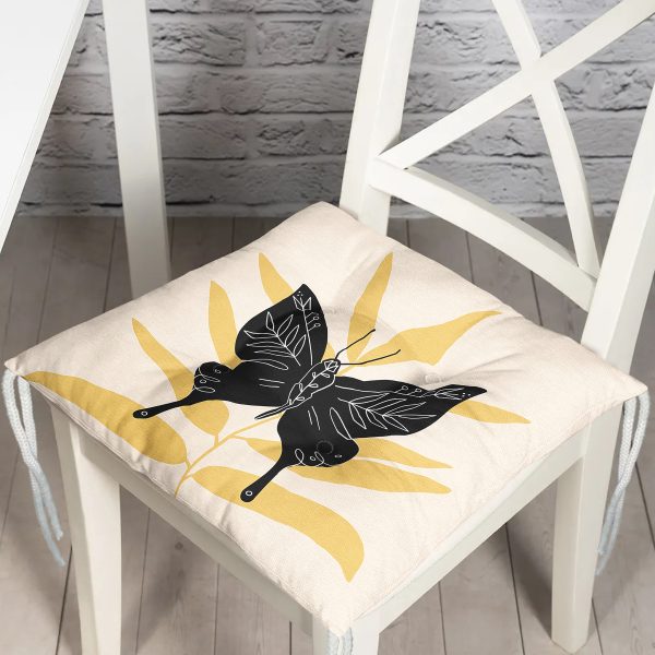 Kelebek Silüetli Özel Tasarım Dijital Baskılı Modern Pofuduk Sandalye Minderi
