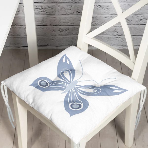 Mavi Kelebek Motifli Dijital Baskılı Modern Pofuduk Sandalye Minderi