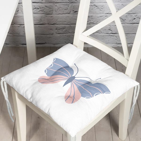 Mavi Pembe Kelebek Desenli Dijital Baskılı Modern Pofuduk Sandalye Minderi