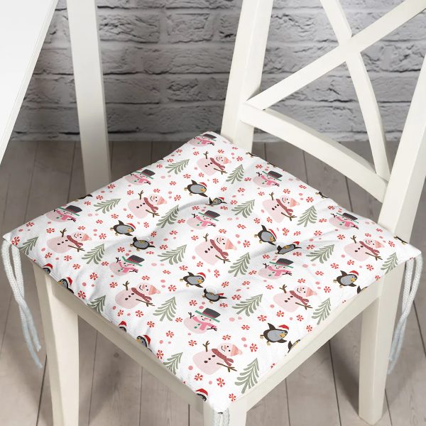 Realhomes Yavru Penguenler Çizimli Özel Tasarım Dijital Baskılı Modern Pofuduk Sandalye Minderi