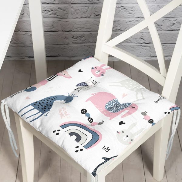 Realhomes Sevimli Hayvanlar Motifli Özel Tasarım Dijital Baskılı Modern Pofuduk Sandalye Minderi