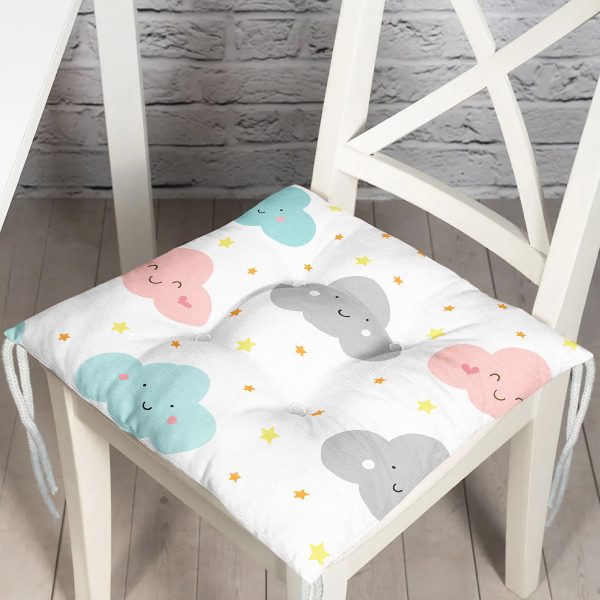 Gülümseyen Bulut Temalı Dijital Baskılı Özel Tasarım Modern Pofuduk Sandalye Minderi
