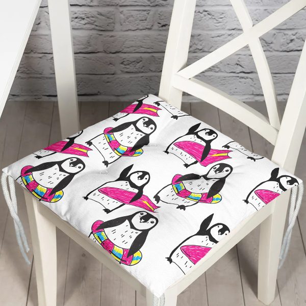 Penguen Desenli Dijital Baskılı Özel Tasarım Modern Pofuduk Sandalye Minderi