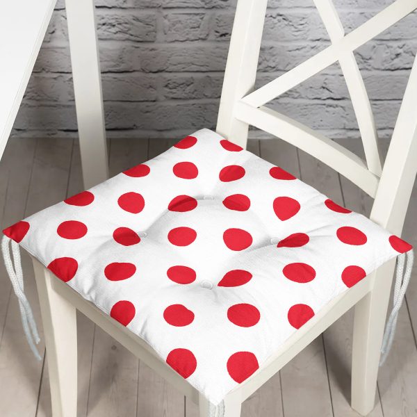 Kırmızı Puantiyeli Dijital Baskılı Modern Pofuduk Sandalye Minderi