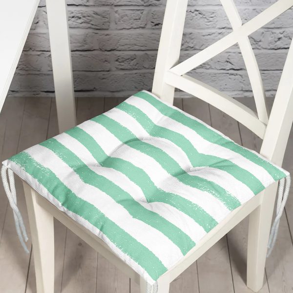 Su Yeşili Çizgili Dijital Baskılı Modern Pofuduk Sandalye Minderi
