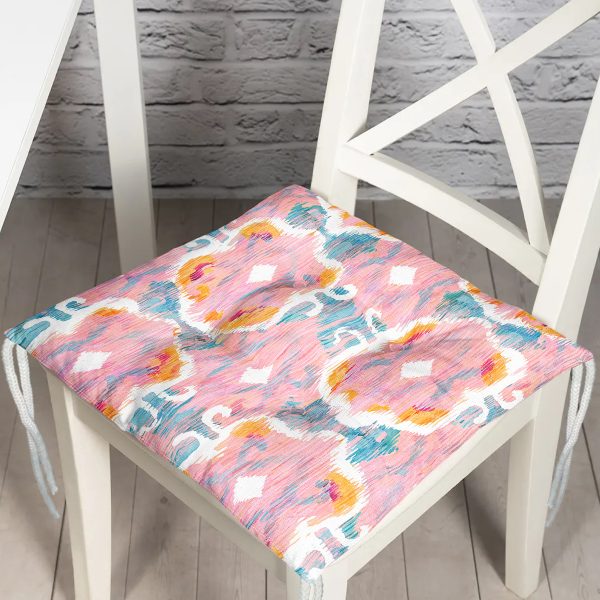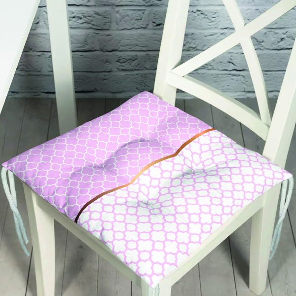 Pembe & Beyaz Ogea Desenli Dijital Baskılı Modern Pofuduk Sandalye Minderi