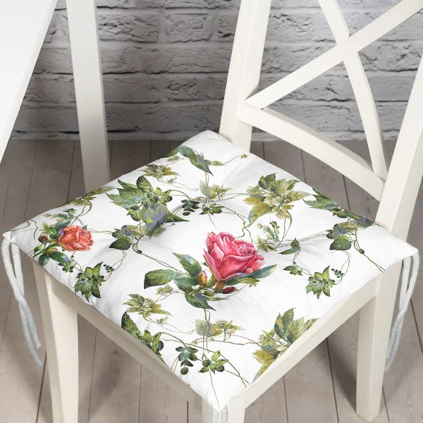 Beyaz Zemin Üzerinde Renkli Yaprak Desenli Dijital Baskılı Modern Pofuduk Sandalye Minderi