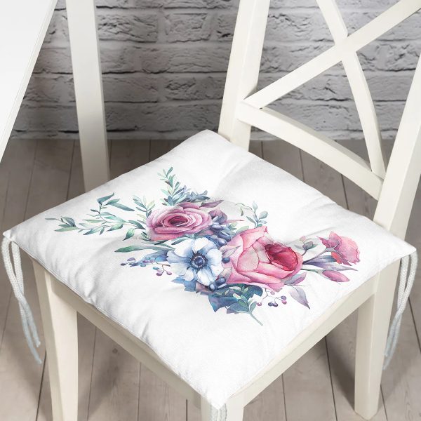 Lila Renk Begonya Motifli Dijital Baskılı Pofuduk Sandalye Minderi