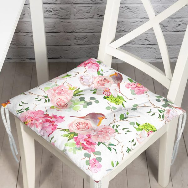 Renkli Kuş Motifli Dijital Baskılı Pofuduk Sandalye Minderi