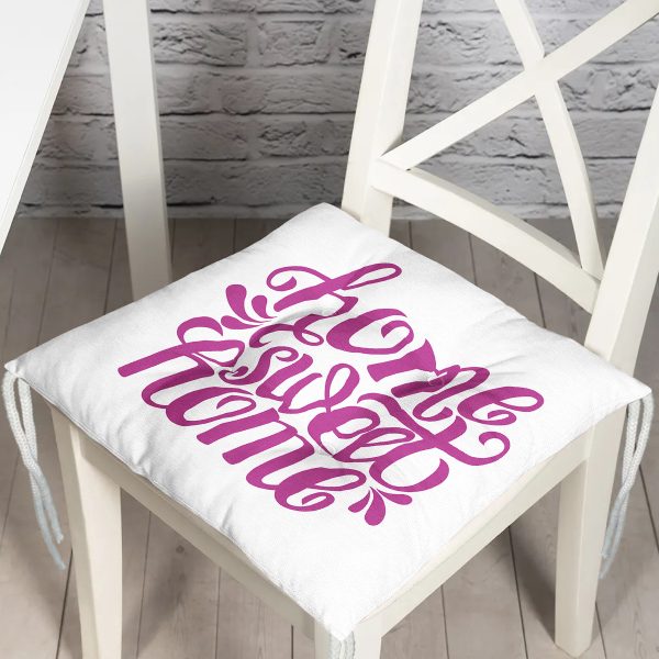 Eflatun Home Sweet Home Dijital Baskılı Pofuduk Sandalye Minderi