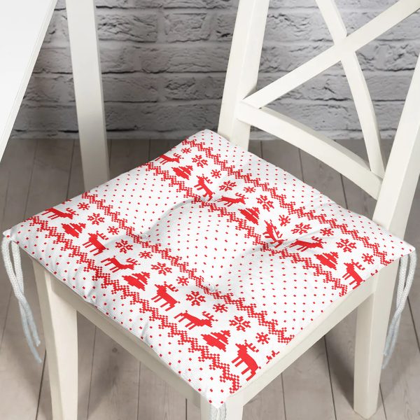 Realhomes Kanaviçe Görünümlü Geyikler Özel Tasarım Modern Pofuduk Sandalye Minderi