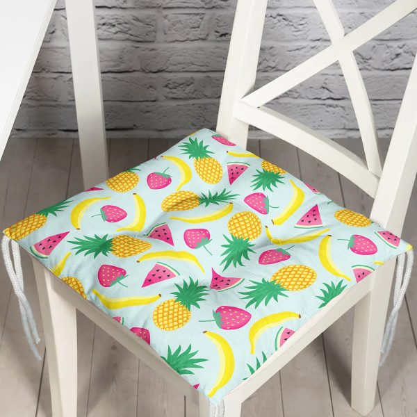 Tropikal Meyve Desenli Özel Tasarımlı Dijital Baskılı Modern Pofuduk Sandalye Minderi