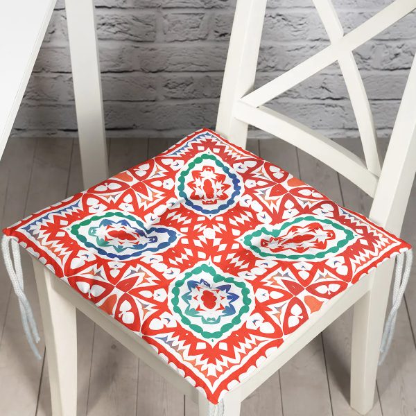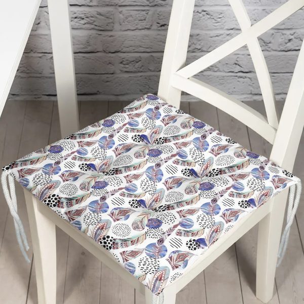 Modern Çini Motifli Dijital Baskılı Modern Pofuduk Sandalye Minderi
