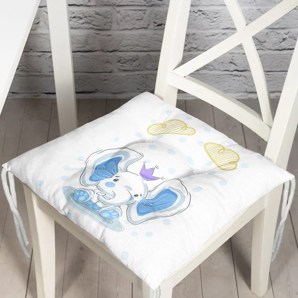 Realhomes Mavi Sevimli Fil Tasarımlı Modern Pofuduk Sandalye Minderi