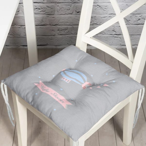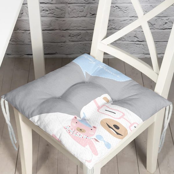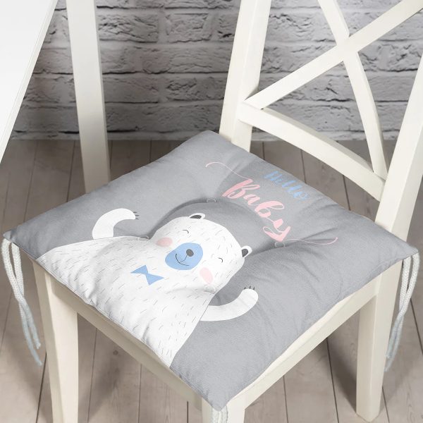 Gri Zemin Hello Baby Yazılı Ayıcık Desenli Dijital Baskılı Modern Pofuduk Sandalye Minderi