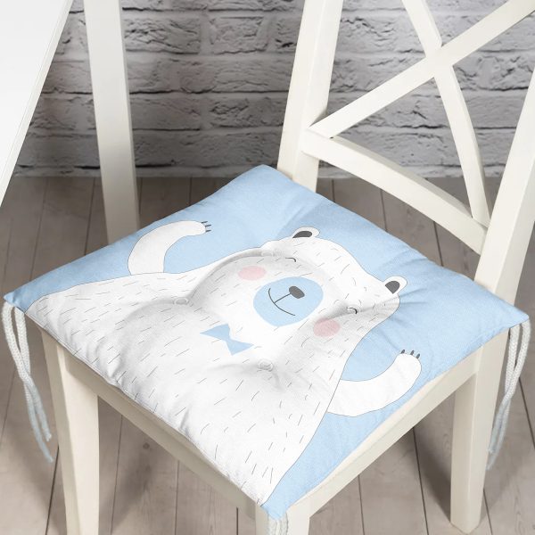 Mavi Zemin Sevimli Ayıcık Desenli Özel Tasarımlı Dijital Baskılı Modern Pofuduk Sandalye Minderi