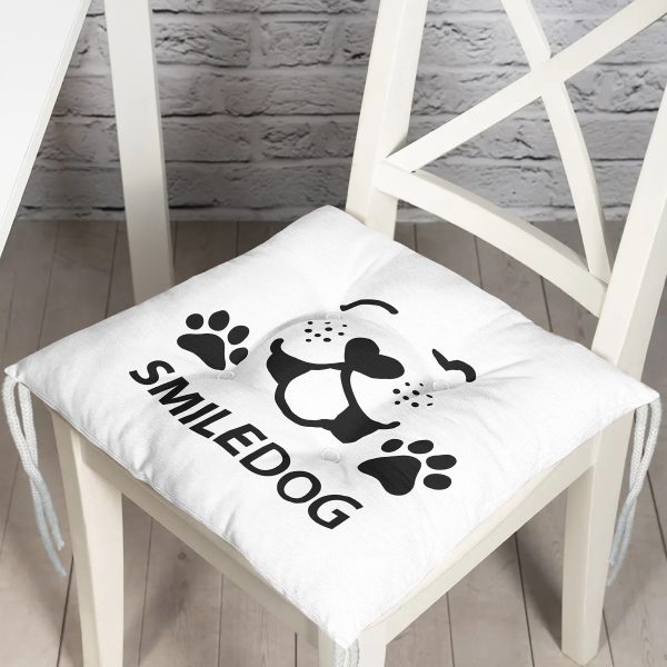 SmileDog Motifli Dijital Baskılı Modern Pofuduk Sandalye Minderi